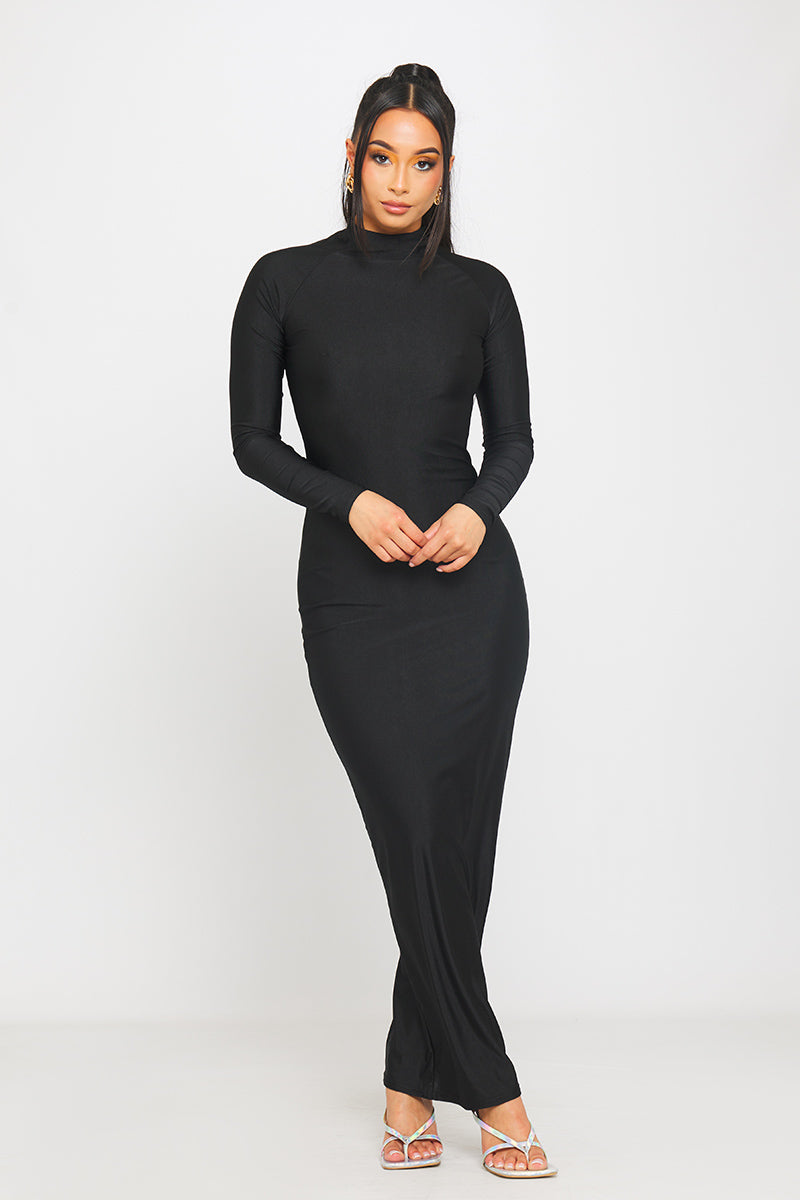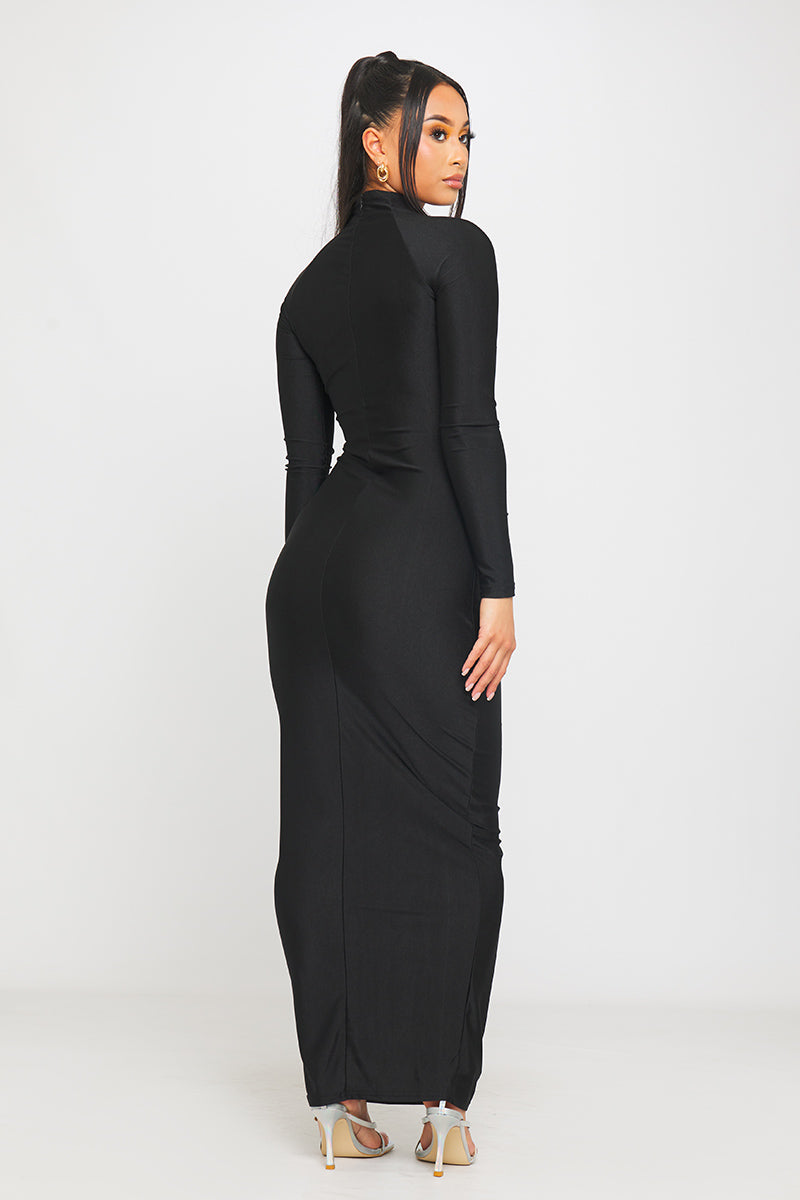 Black High Neck Long Sleeve Bodycon Midaxi Dress