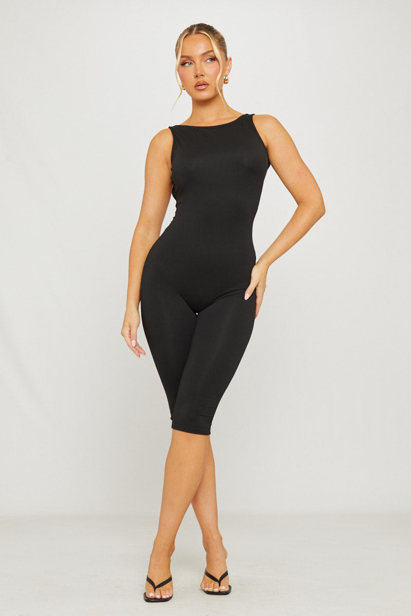 Black Sleeveless Open Back Capri Jumpsuit