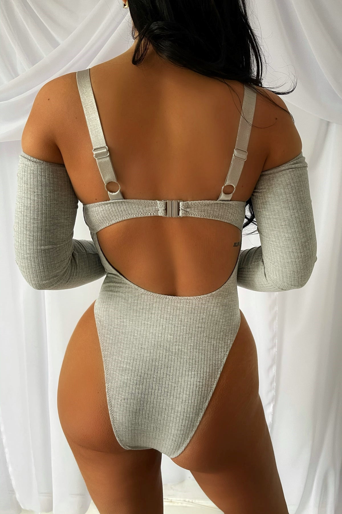 Light Grey Ribbed Removable Sleeve Bodysuit